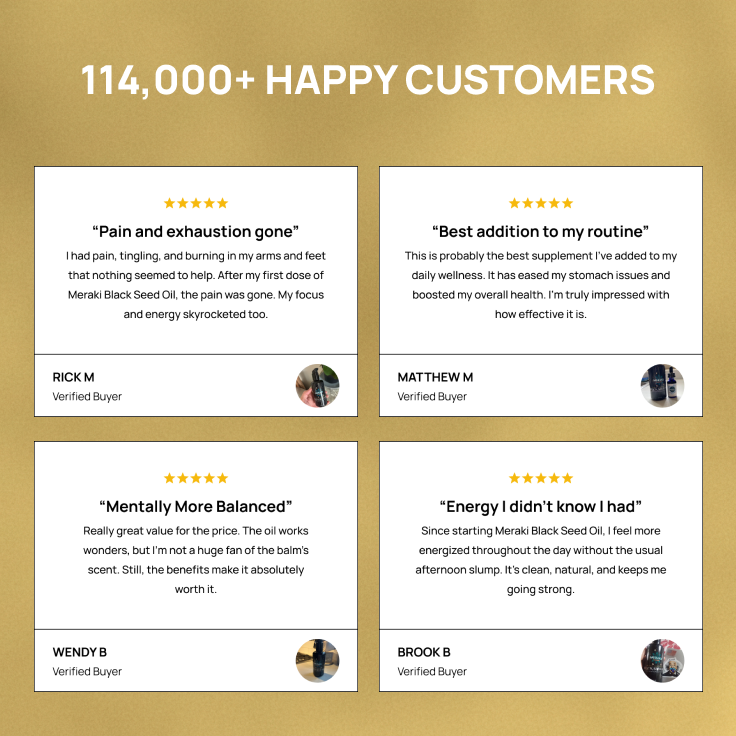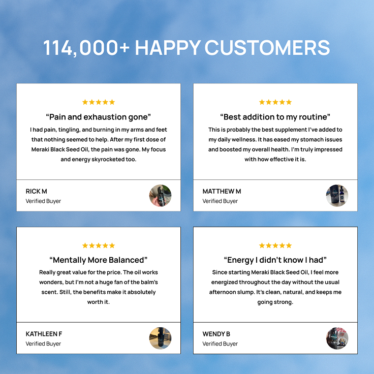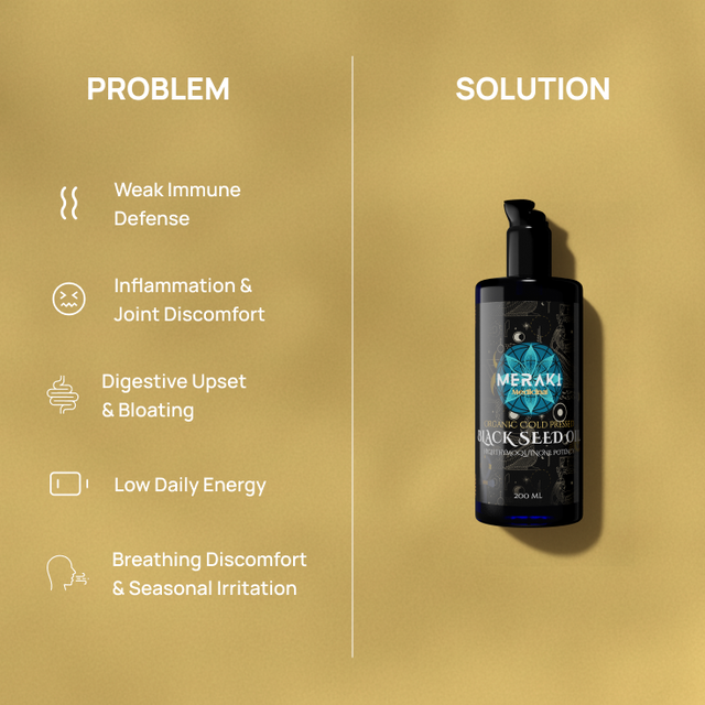 Try Meraki Black Seed Oil for 30 days risk free. Love it or get your money back