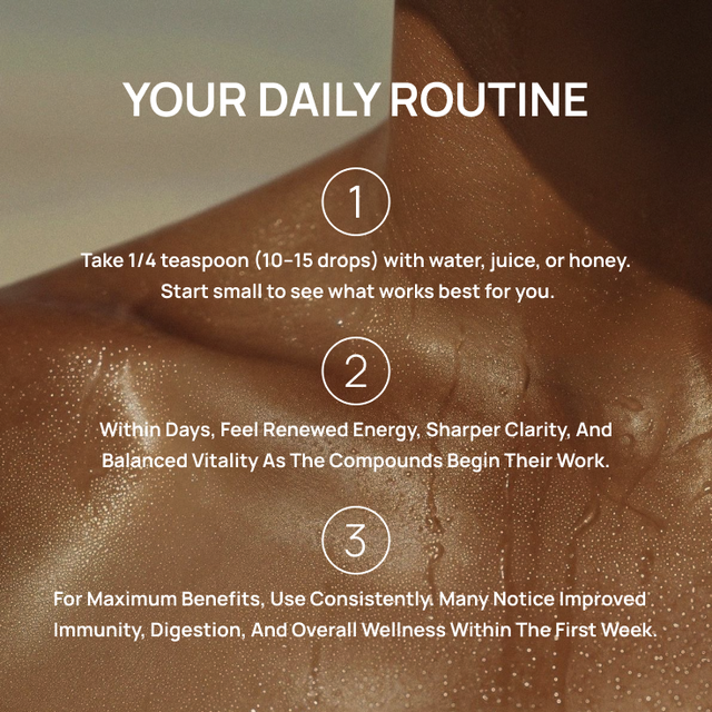 Take 10–15 drops (¼ teaspoon) daily, either in the morning on an empty stomach or before bed. Mix with juice or honey for a smoother taste. Start with a smaller dose to assess tolerance.